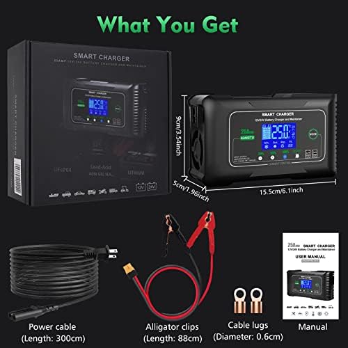 - Works with 12V and 24V Lifepo4, Lead-Acid (AGM/Gel/SLA) batteries