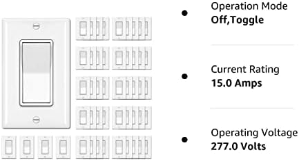 From the brand, BESTTEN offers a modern, elegant, and reliable range of light switches that can enhance the style and quality of any place you install them. This pack of 50 single pole decorator wall light switches come with wall plates, each rated 15A at 120/277V. They have an on/off rocker paddle interrupter that offers a smooth and quiet action. In addition, BESTTEN provides a 3-year worry-free warranty for all types of light switches, including decorator switch, toggle switch, double switch, combination switch, dimmer switch, and sensor switch.