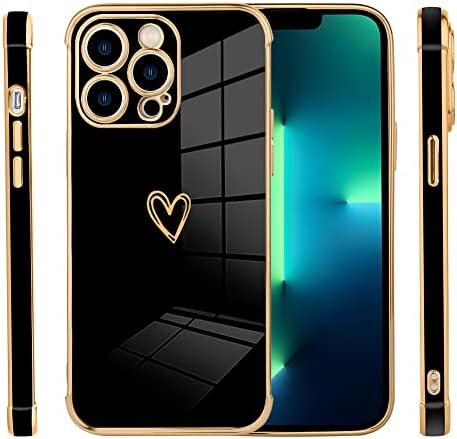 AIGOMARA iPhone 14 Pro Max Case with Heart Design in Plating Black