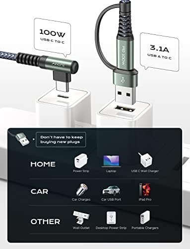 AINOPE 100W USB C to USB C Cable – Grey/3.3ft/2pack for 100W USB C Charging Station Wall Charger Adapter PD4.0/QC5.0 5A MacBook Pro 2022, iPad Pro 2023, Galaxy S23
