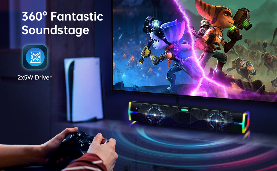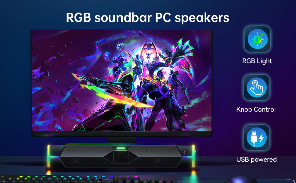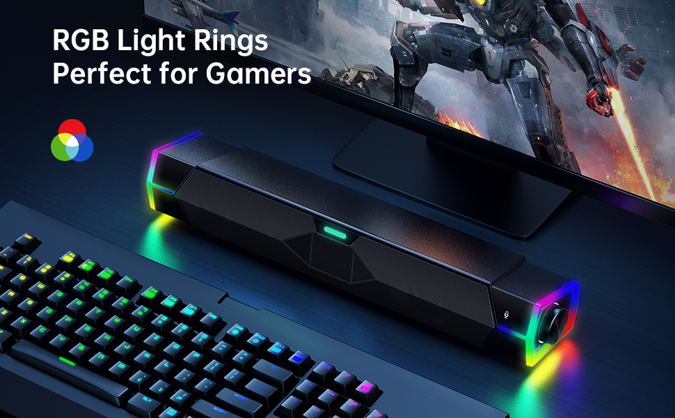 FishCovers Dynamic RGB Computer Sound Bar for PC Desktop Monitors