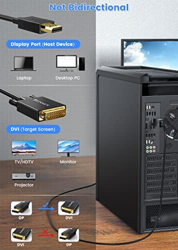 FOINNEX Gold-Plated DisplayPort to DVI-D cable is a unidirectional cable suitable for your laptop or desktop equipped with DisplayPort. This cable allows you to connect your computer to a monitor or projector for high-definition video streaming. You can use it to mirror or extend your desktop for an expanded workstation, gaming, or to show a presentation at school or work.