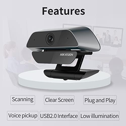 Hikvision 2K HD Webcam captures video at 30fps, features a built-in microphone, and comes with noise-reduction mics to filter out ambient noise. Ideal for conferencing, gaming, streaming, recording, online classes, and more.
