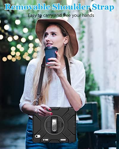 iPad 10th Generation Case 2022: Military Grade Shockproof Silicone Protective Cover for iPad 10th Gen 10.9 Inch W/ 360° Rotatable Stand- Shoulder Strap- Handle- Pencil Holder- Black