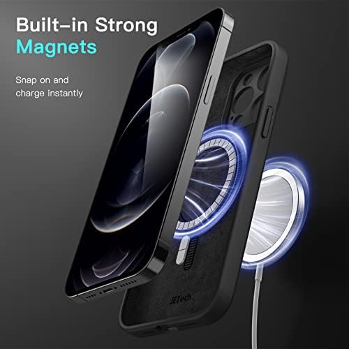 JETech Magnetic Silicone Case for iPhone 12 Pro Max 6.7-Inch, compatible with MagSafe. Phone Cover with Full Camera Lens Protection in Black
