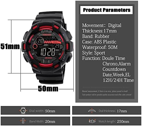 Mens Digital LED Sport Watch Waterproof Outdoor Military 12H/24H Time Multifunction Watch Dual Time Backlight Stopwatch Calendar Date Plastic Watch with Rubber Strap
