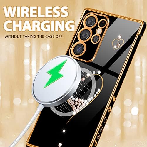 This Samsung Galaxy S23 Ultra Case comes in a giftable box, making it an excellent gift for yourself or for family and friends who love girly gold plating phone covers with cute bling glitter heart design. The box even has camera protection and screen protectors included for a greater shopping experience.