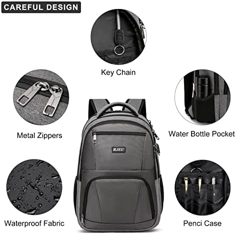 RJEU Backpack with Laptop Sleeve, USB Port, and Ergonomic Straps for Travel and School
