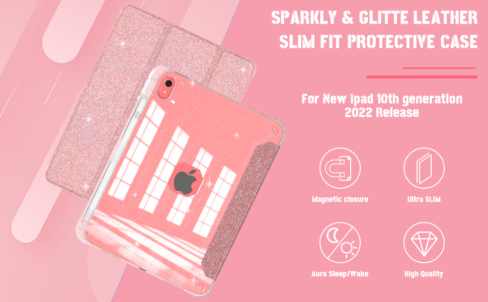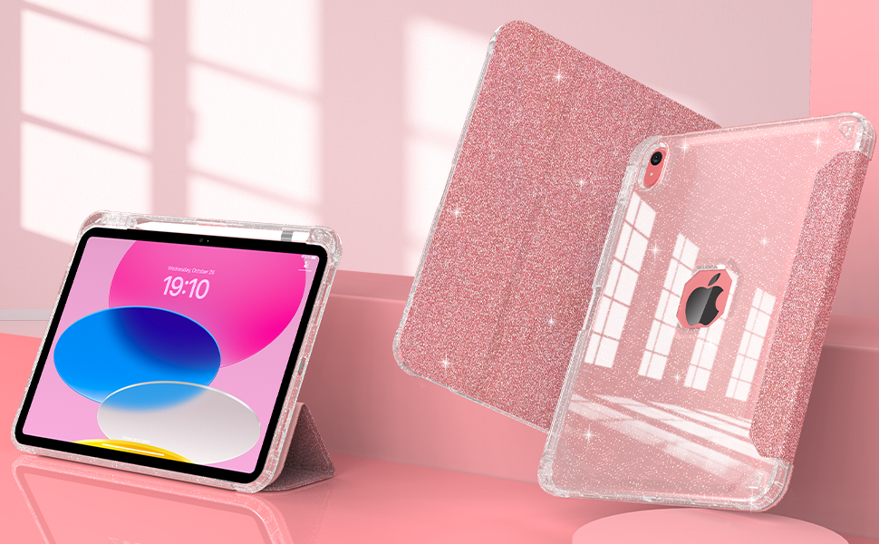 - Specially glittery sparkle design, clear shining rear shell, light luxury style minimalist iPad 10th generation case for girls and women