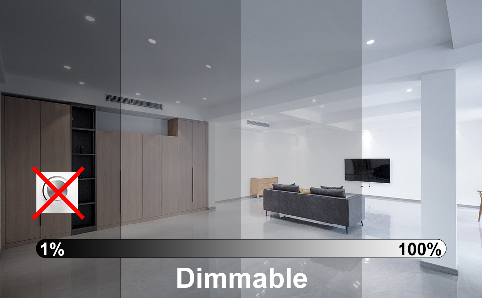 SikSog Smart Recessed Lighting is 1%-100% smooth dimmable. The dimming process is flicker-free, silent, smooth and has an instant start.