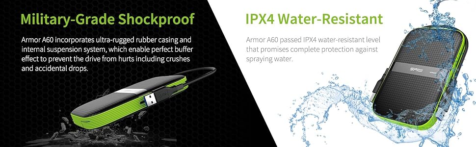 [ALL-ROUND DATA PROTECTION] Military-grade shockproof and IPX4 water-resistant protection
