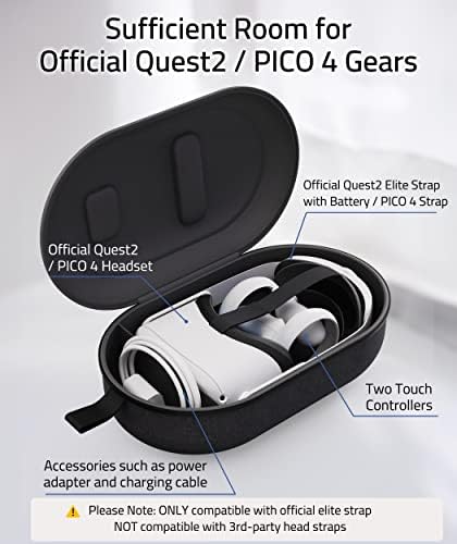 Introducing the Syntech Hard Carrying Case Compatible with Meta/Oculus Quest 2 Accessories/PICO4/Pro VR Headset with Elite Strap, Touch Controllers, and Other Accessories in Ultra-Sleek Design for Travel and Storage in Black.