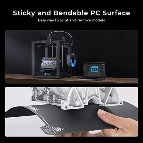 The printer also comes equipped with a sticky and bendable PC build surface that has two notches and a magnetic base for quick installation. The frosted PC surface is sticky to models, and after printing, the model can be removed right away with a slight bend.