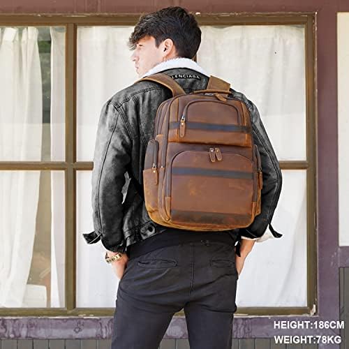 TIDING Men’s Vintage Leather Backpack – Ideal for Business, Travel, and Hiking
