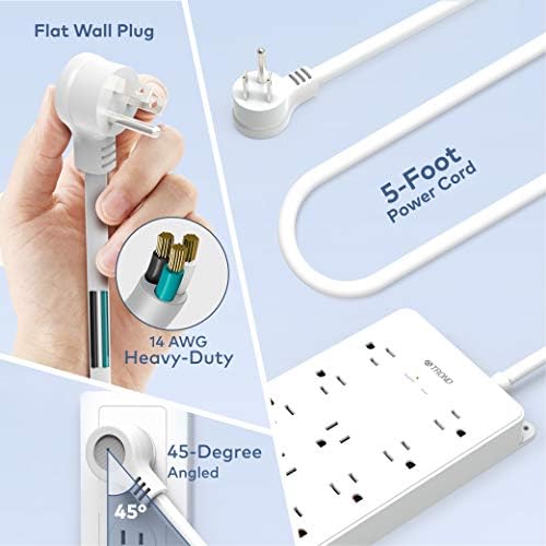 TROND Power Strip Surge Protector – 13 Outlets, 4 USB Ports, 5ft Extension Cord, and More