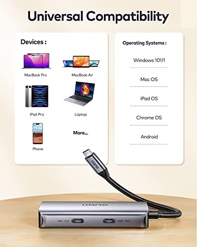 USB C Hub 3.2 Gen 2, llano 5-in-1 USB Hub Docking Station, 10Gbps 4 USB-C Data Ports, 100W PD, Plug & Play, for MacBook Pro/Air/Mini, iMac, iPad, iPhone, Laptop, PC, Flash Drive, Mobile HDD, Gray