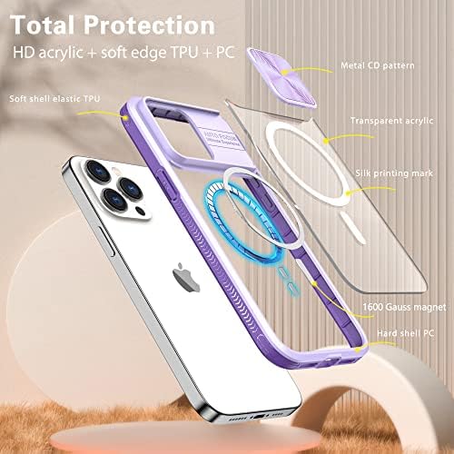 WATEFULL iPhone 14 Pro Clear Case with Sliding Camera Cover Protector and MagSafe Compatibility