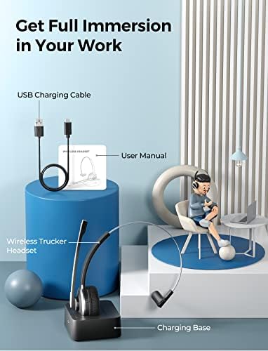 This wireless headset with a microphone for PC is designed to be comfortable with skin-friendly soft protein earpads, a rotatable microphone, and an adjustable headband for comfort. Weighing only 1.7oz, this headset feels very light on your head and ears, allowing you to stay focused on your work without feeling any bulk or burden.